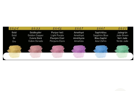 6 lækre skinnende og højt pigmenterede akvarelfarver i full pans